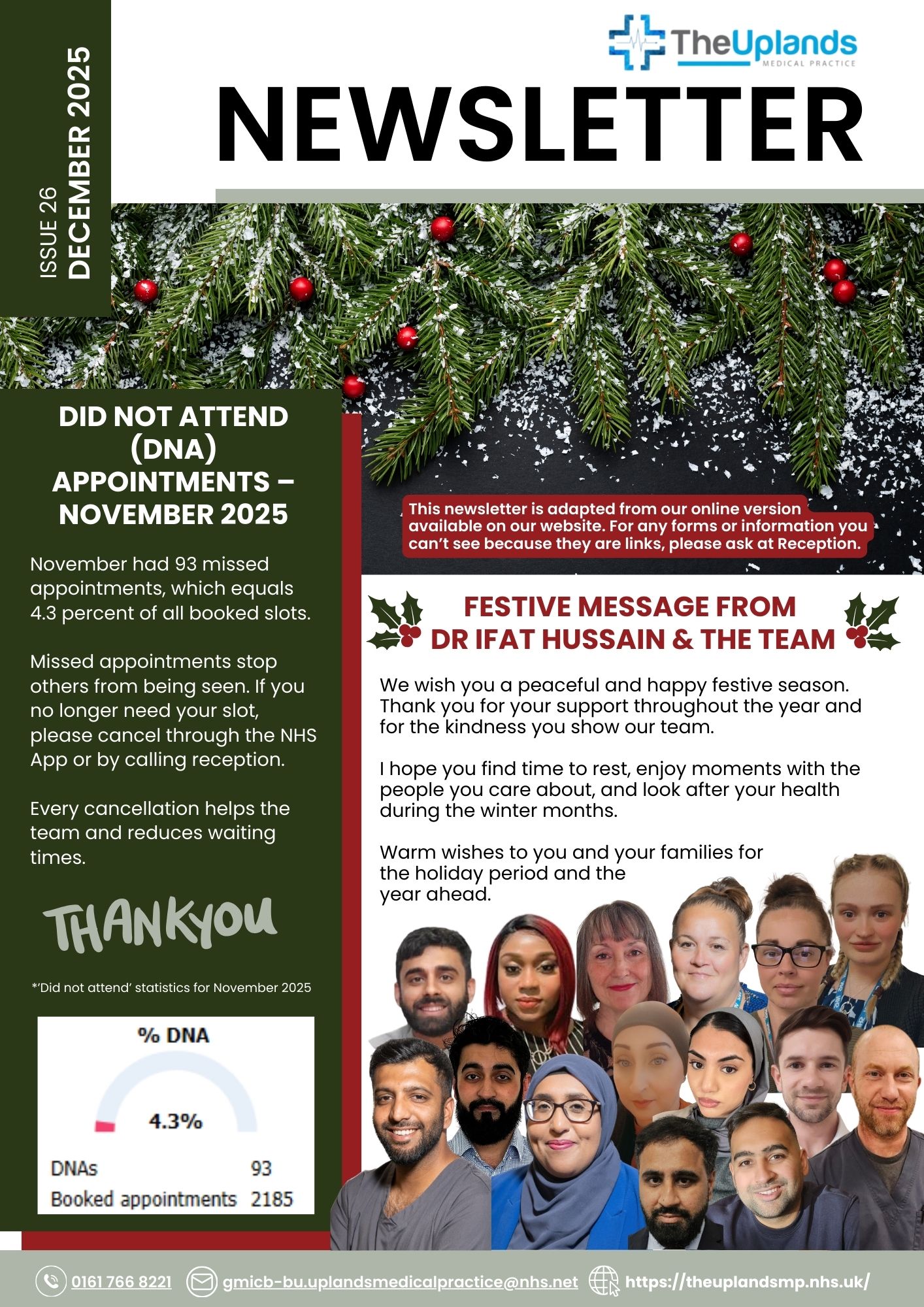 December 2025 Patient Newsletter Posted by: philippa - Posted on: 4th December 20254th December 2025 Download PDF Newsletter here